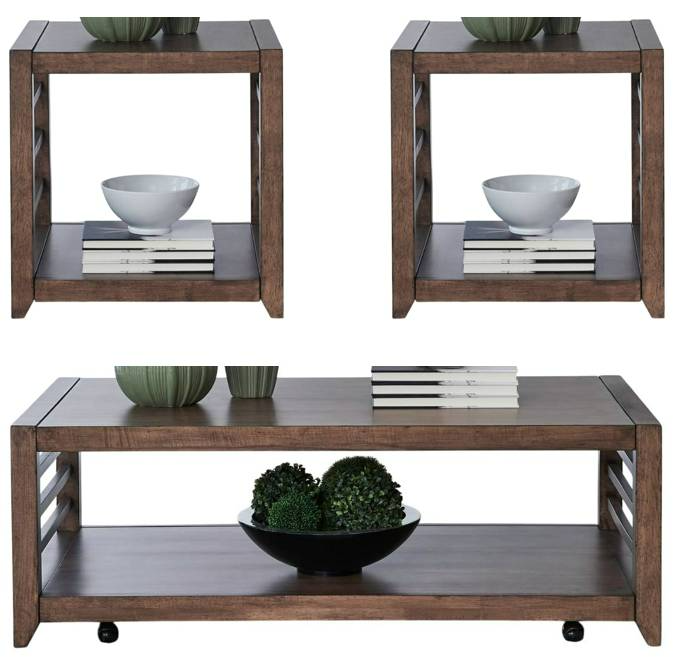 The Liberty Furniture Shaker Lakes 3-Piece Occasional Table Set in Harvest Brown combines style and function. Featuring a cocktail table and two end tables, each crafted from quality wood with a warm brown finish, this set adds timeless elegance to any living space.Read More