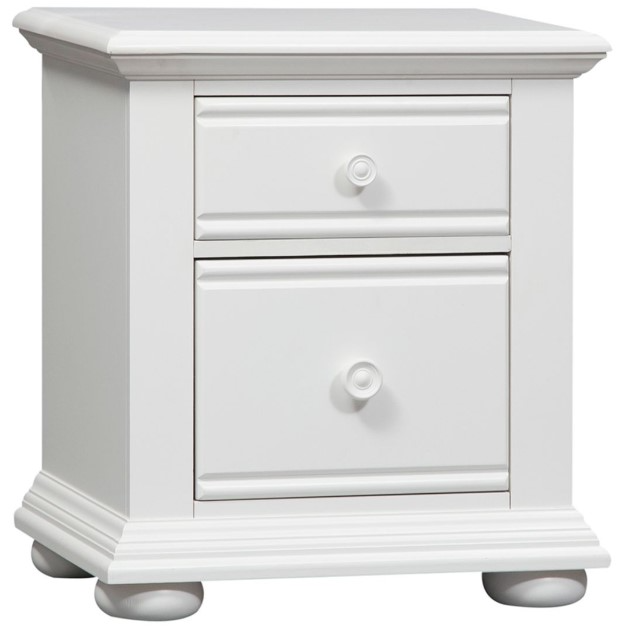 Obtain a fashionable cottage look with this 2 drawer night stand. The oyster white finish is accented by wooden knob hardware. This piece is crafted of pine solids with painted MDF, and features fully stained interior drawers.Read More