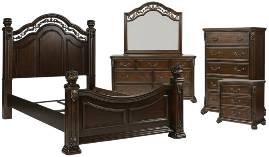 *Bed, chest, nightstand, dresser and mirror only, any other products that may be displayed are sold separately. Images may not represent the actual size and color in images may differ in person. See store for the actual color or finish.