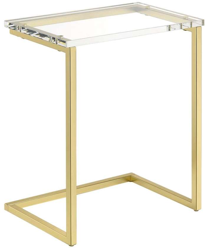 Clear acrylic transparent finish with a metal base in a satin gold finish