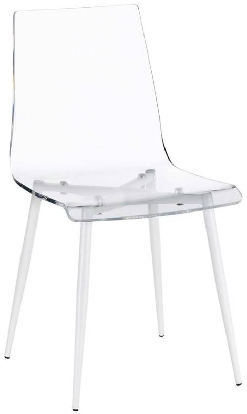 No better way to update your space than with a sleek ultra-hip acrylic dining chair like this. A great transparent modern style that is “all the rage” and here to stay. Thick high-quality acrylic combined with metal legs in white.Read More
