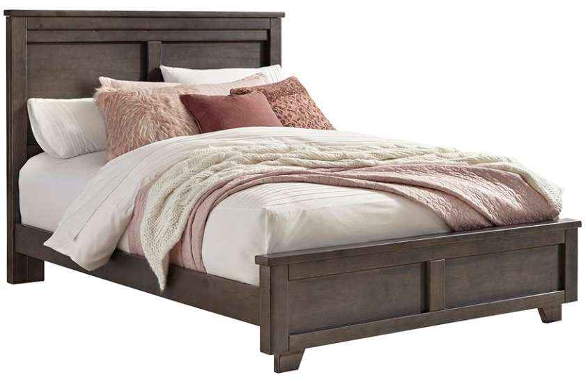 This bed features simplistic linear detail allowing the architectural lines to create interest. A perfectly proportioned ledge on the top of the headboard provides depth that makes for captivating shadows with a panel framed footboard. A beautiful Storm Gray finish.Read More