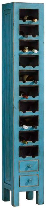 A great slender wine cabinet that fits anywhere in size and style. Twenty open slots for wine plus two small drawers provide a lot of storage for such small dimensions. Design is unpretentious and clean. The “Antique Aqua” finish is breathtaking. A simple look that will be filled with pleasure.Read More