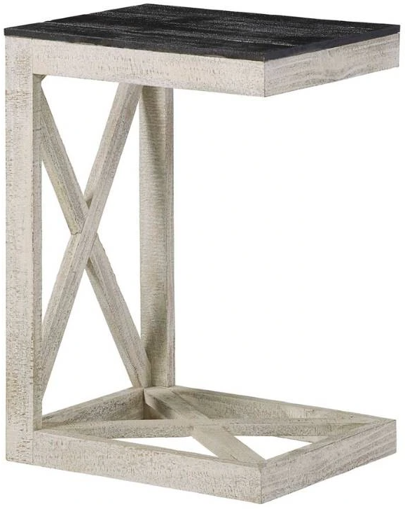 Make it easy with this convenient C-table that fits under most sofas and chairs. A cool looking X design that is unique and breaks up the monotony of those every day matching end tables that everyone has. A great transitional style that will work in almost any setting.