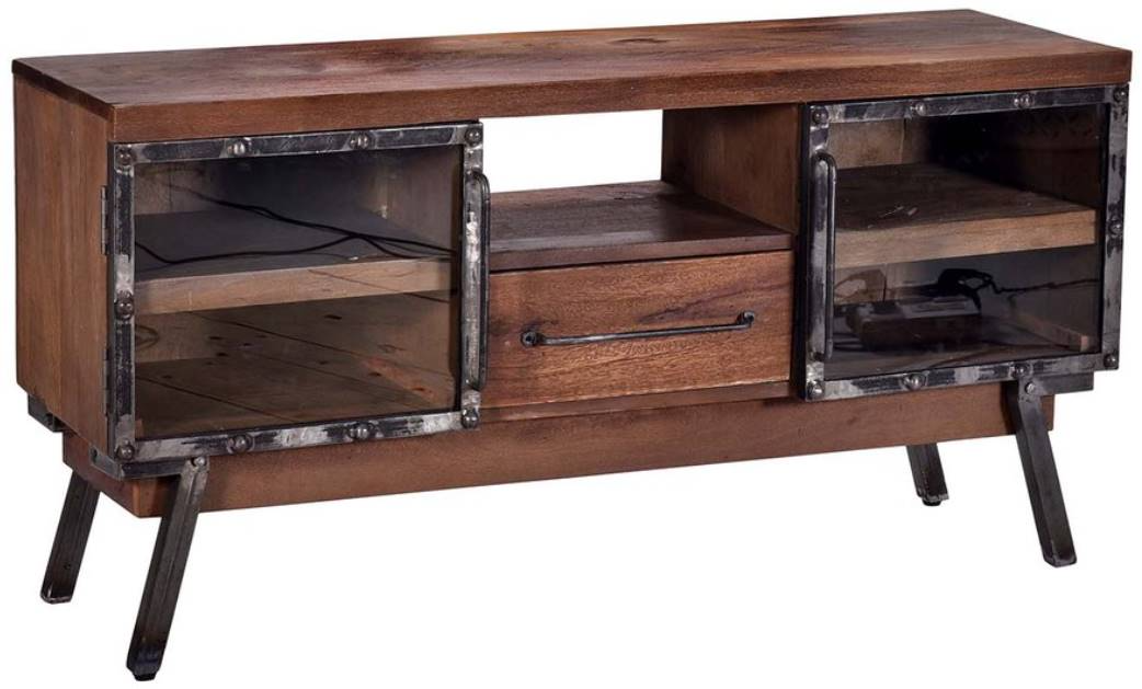 Game changer. This console is sure to become everyone’s favorite. Gorgeous mango and reclaimed wood with glass doors, iron framed doors and legs. An industrial design with a mid modern flare. Plenty of storage with lots of style.Read More