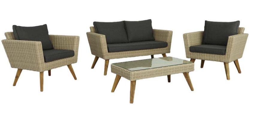 A great way to relax. This outdoor group with loveseat , 2 chairs, and cocktail will not disappoint. A great transitional style that will go in almost any setting . The woven material is in a sand finish. Seat & back cushions are extremely comfortable and upholstered in a correlating Dark Gray fabric that is very durable.Read More