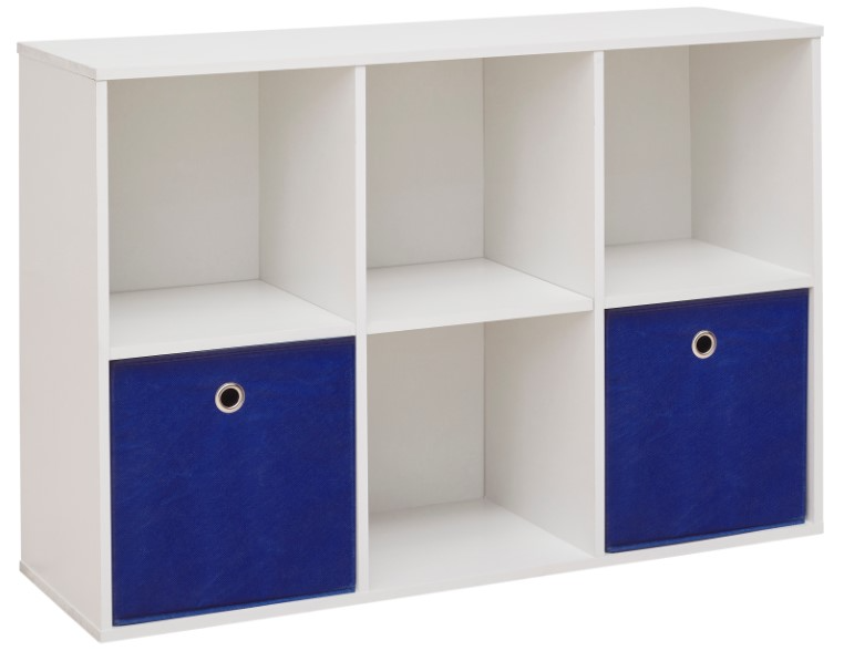 This 6 cube organizer is perfect for all of your storage needs. This cube comes with 2 fabric drawer baskets in a dark blue color that contrasts so well against the white finish. The baskets fold and are removable to give plenty of storage options. 6 cubes of storage that will help you organize any room.Read More