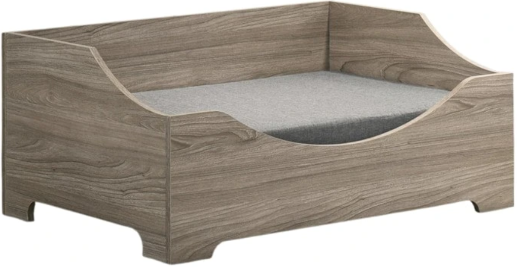 “Fit for a Queen or King” is an understatement for this bed. Our pets deserve the best. This pet bed looks like is made from a rustic crate. Finished in a Sand color. Very comfortable cushion with light colored gray fabric is included.Read More